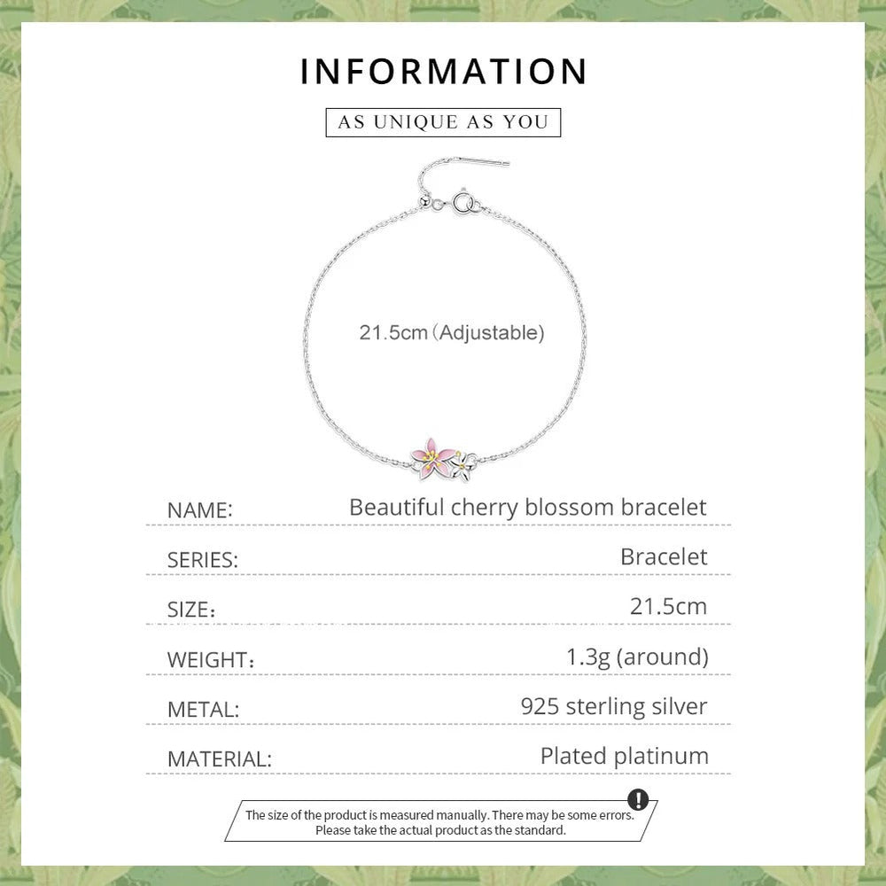 Beautiful Cherry Blossom Bracelet Adjustable Silver Snake Chain Link